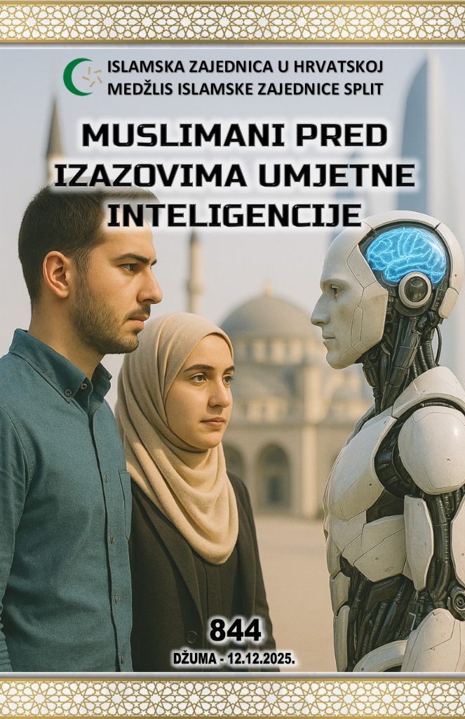 Braćo i sestre, na kraju današnje hutbe zaključimo: umjetna inteligencija može biti veoma korisna ako je koristimo kao sredstvo, a ne kao gospodara. Može biti opasnost ako je prihvatimo bez razmišljanja i nju uzmemo da nam bude upućivač umjesto Kur’ana i sunneta. Naš zadatak je da kao vjernici budemo odgovorni i svjesni da je čovjekovo dostojanstvo koje mu je Uzvišeni Allah dao veće od svake umjetne inteligencije, bez obzira koliko ona u nekim stvarima postala superiornija od nas. Sva tehnologija je stvorena voljom i dopuštenjem Uzvišenog Allaha i podložna je Njegovoj moći. A čovjek je, kao nositelj emaneta, pozvan da bude mudar, pravedan i milostiv.
