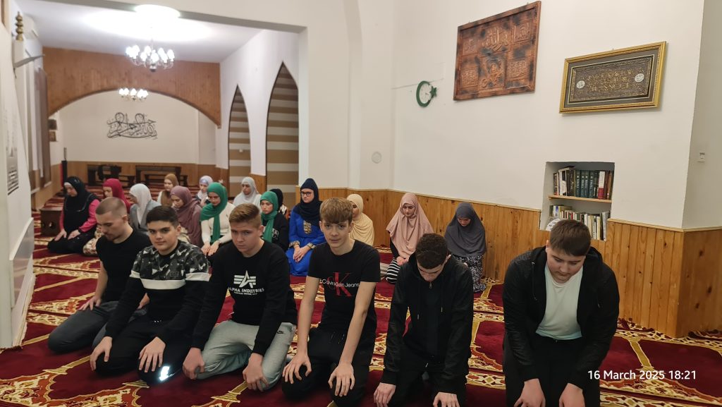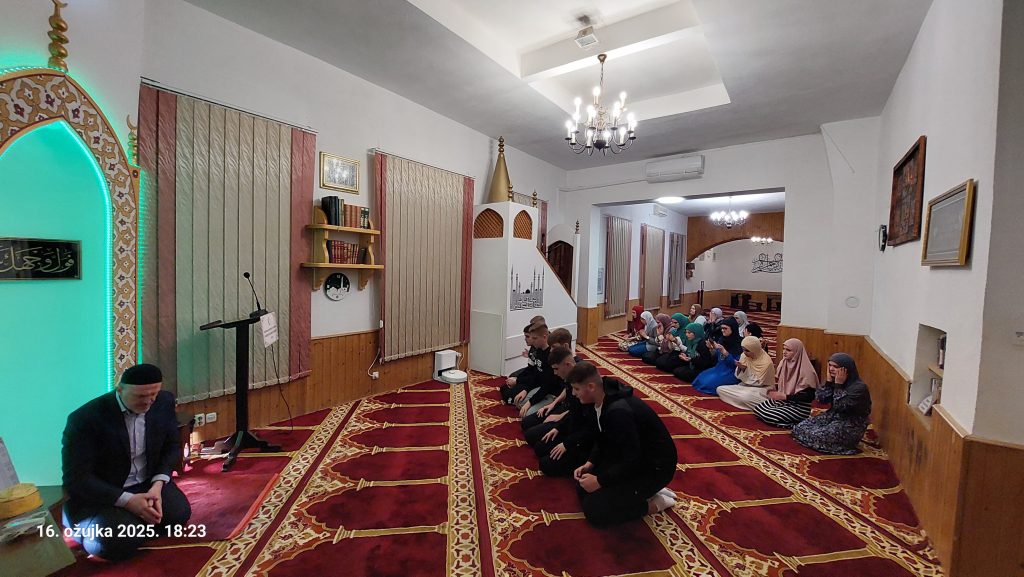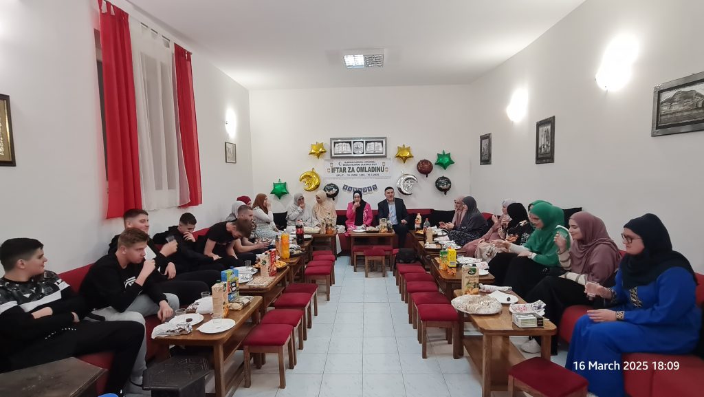 Iftar je započeo učenjem dove i prekidanjem posta vodom i hurmama, nakon čega je klanjan akšam-namaz u džematu. Druženje se nastavilo u veseloj i opuštenoj atmosferi, uz nagradne igre i inspirativne razgovore, a omladina je ostala u mesdžidu sve do jacije, ispunjavajući ga radošću i duhovnom svjetlošću.