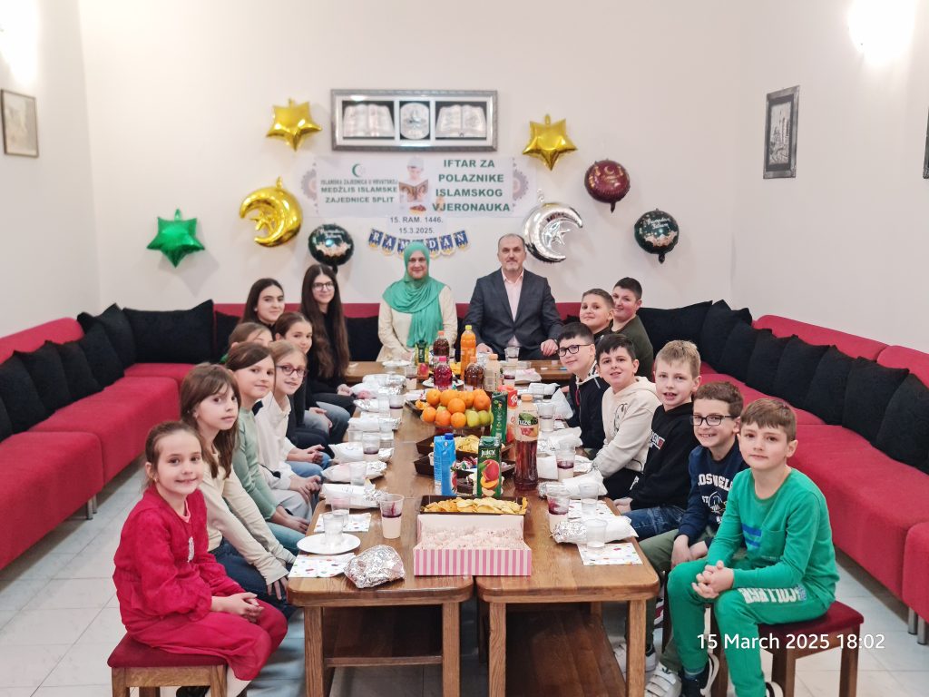 U subotu, 15. ožujka 2025. / 15. ramazana 1446., u divanhani Medžlisa Islamske zajednice Split upriličen je iftar za polaznike islamskog vjeronauka. Ova lijepa inicijativa potekla je od naših vjeroučitelja, muallime Suade Hadžić i Vahid-ef. Hadžića, koji su željeli omogućiti djeci da osjete radost ramazana u zajedničkom okruženju.