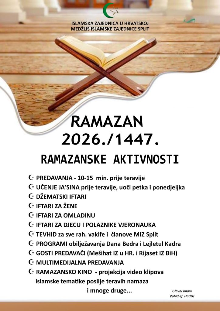 U nastavku donosimo pregled planiranih ramazanskih aktivnosti u MIZ Split.